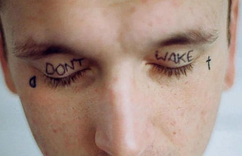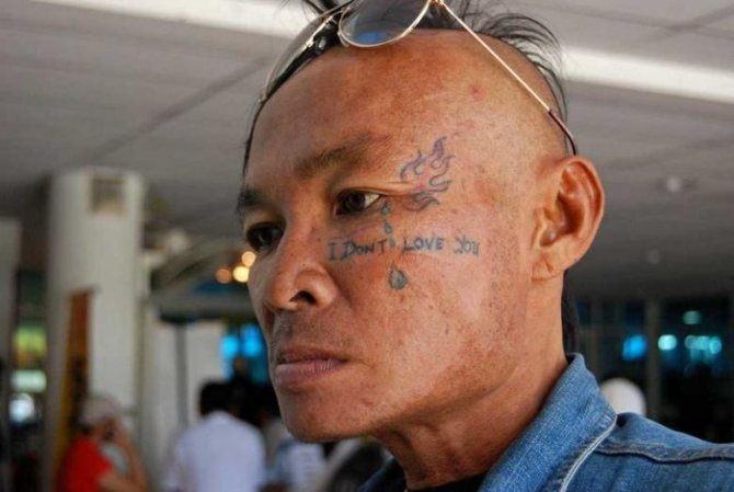 Molto spesso ci sono tatuaggi di testo - una varietà di iscrizioni in una varietà di caratteri. Sotto gli occhi, questo viene fatto raramente - figuriamoci sulle palpebre. Ma nell'ambiente carcerario è considerato abbastanza normale. Molte persone hanno sentito parlare dell'iscrizione "non svegliarsi", e non c'è bisogno di interpretarla in linea di principio. Ma a volte la scritta "pieno d'amore" si trova sotto gli occhi. Un tatuaggio di questo tipo ha un significato ben definito.
