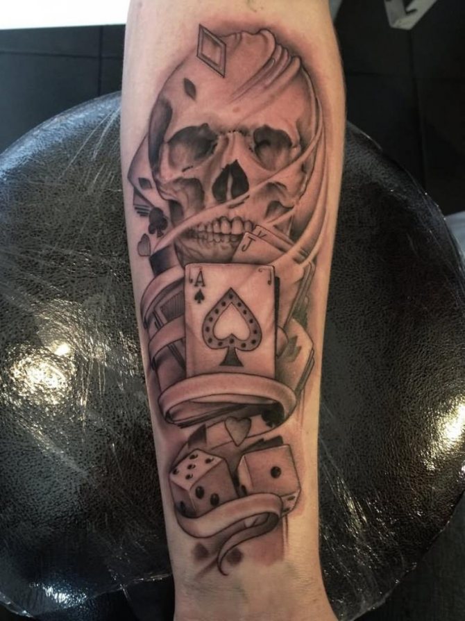 Inoltre, un tale tatuaggio può significare il gioco d'azzardo del suo proprietario e il desiderio di vincere sempre.
