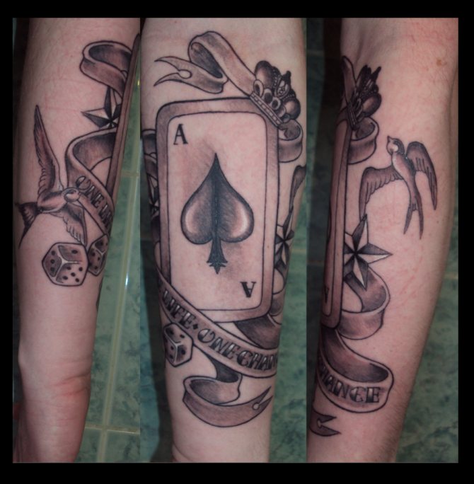 Le immagini spettacolari con gli assi sono spesso scelte sia dagli uomini che dalle donne. Spesso questa immagine è preferita per la sua originalità. Ma a volte tali tatuaggi sono fatti per motivi di significato speciale.
