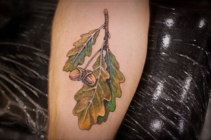 - Ramo di quercia - un simbolo di forza, indistruttibilità e impavidità. Questo tatuaggio è indossato dai giovani con una felice combinazione di saggezza e forza fisica.