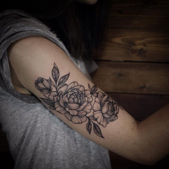 - Tatuaggio di una peonia. I significati principali della peonia sono buona fortuna, ricchezza e amore. Questo fiore è particolarmente adatto per gli uomini, poiché simboleggia la mascolinità in Oriente. Anche le ragazze non l'hanno trascurato e applicano succosi tatuaggi di peonie sull'anca e altre parti del corpo. Scopri di più sul significato del tatuaggio della peonia.