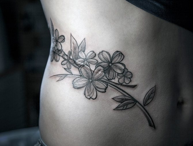 Tra le immagini di rami con fiori, spicca il motivo dei fiori di ciliegio. I fiori di ciliegio sono il miglior tatuaggio per le ragazze innocenti desiderose di sottolineare la giovinezza e la purezza. In Giappone, il ciliegio ha molti significati simbolici, come l'innamoramento, la fioritura della vita e dell'amore, la felicità, la speranza e la prosperità.