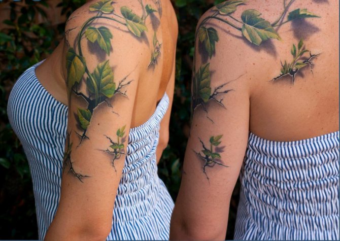 Motivi vegetali più piccoli sono posti sui polsi, all'interno degli avambracci, all'interno e all'esterno delle spalle. Delicati rametti di lavanda, lilla, sakura enfatizzeranno la fragilità delle mani delle donne, mentre voluminose immagini di alloro o oliva enfatizzeranno la forza delle spalle degli uomini.
