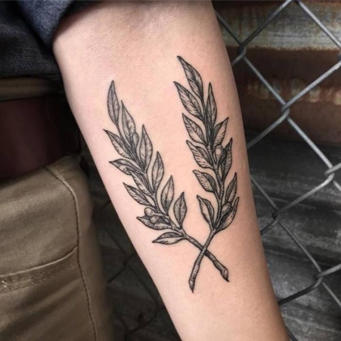 Per gli uomini non c'è tatuaggio migliore dell'immagine di un alloro, perché è un simbolo di mascolinità, forza e potere. Ma anche le donne possono essere avvicinate da una tale immagine, poiché un altro alloro simboleggia la lealtà e la saggezza.