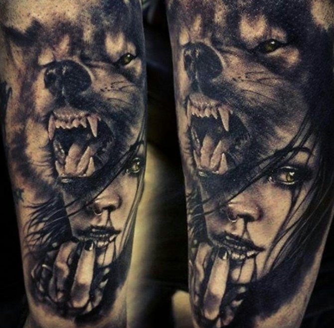 Una lupa raffigurata su un tatuaggio è l'incarnazione della devozione senza limiti, questo dovrebbe essere tenuto a mente quando si sceglie un disegno del corpo. L'animale predatore, dopo la perdita del suo compagno, è rimasto solo per sempre. Spesso le ragazze, dopo le delusioni nella loro vita personale, dipingono l'immagine di un lupo come simbolo di solitudine e incredulità nelle persone. Un tatuaggio popolare tra le donne di mezza età raffigura un cucciolo di lupo, il cui numero corrisponde al numero di figli.