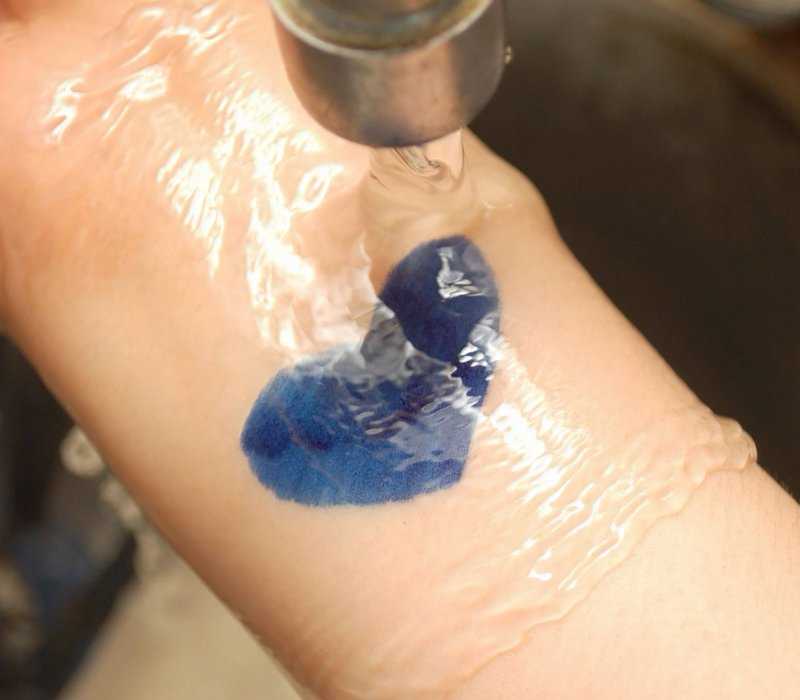 - Alla fine la zona del tatuaggio viene lavata abbondantemente con acqua leggermente calda.