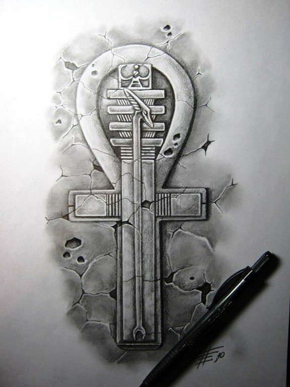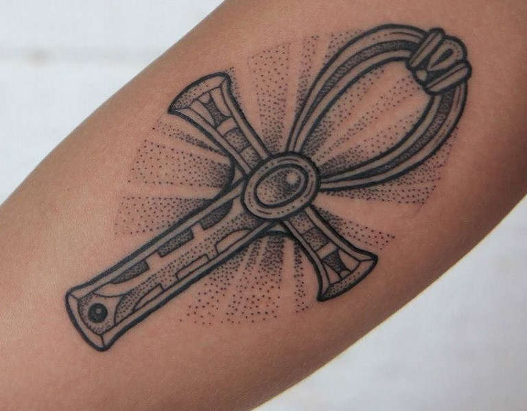L'immagine della croce egiziana è arrivata a noi con il nome di ANKH. Si crede che il segno simboleggi la saggezza e che sia la chiave della vita. L'immagine stessa della croce con un cerchio è l'Eternità. Alcune sottoculture lo vedono come un segno di verità e di pace. Nell'antico Egitto, questo amuleto era considerato il più forte e potente. Era conservato nelle mani dei faraoni durante la loro vita in un altro regno. Un uomo con questo tatuaggio attira la conoscenza, afferra la saggezza ed è forte nelle scienze. Per le ragazze sarà un simbolo dell'estensione della giovinezza, della bellezza, della saggezza femminile. La croce egiziana rafforza il desiderio di migliorare la qualità della vita, la ricerca di nuovi obiettivi e valori.
