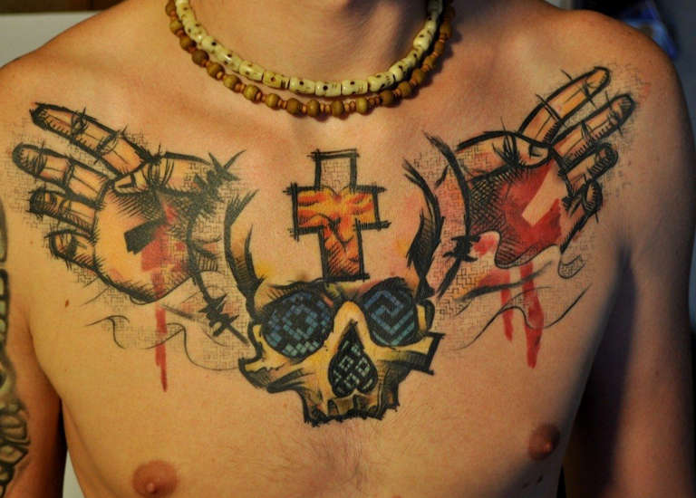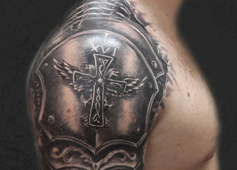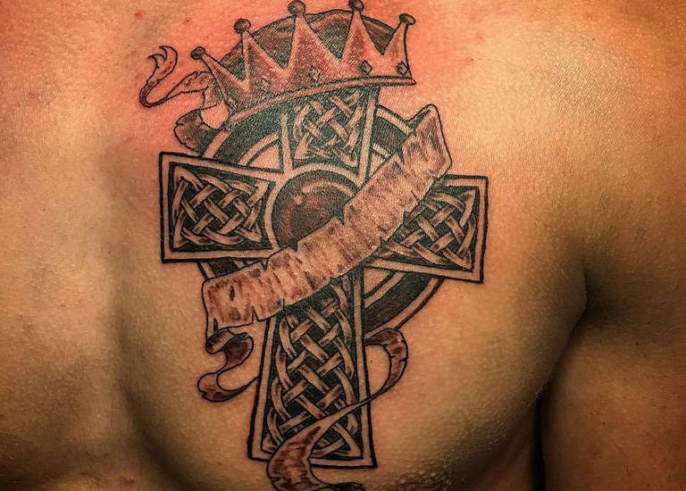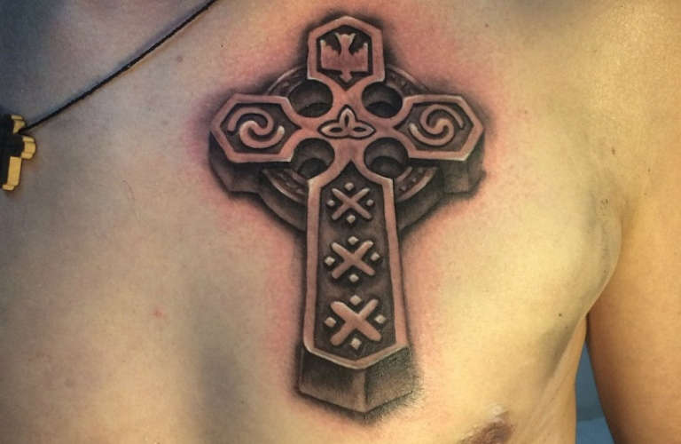 Molti guerrieri nei tempi antichi avevano un tatuaggio della croce sul petto per proteggersi dal rischio e dal pericolo. Ancora oggi, un tale tatuaggio sarebbe un talismano e una protezione per il cuore guerriero di un uomo.
