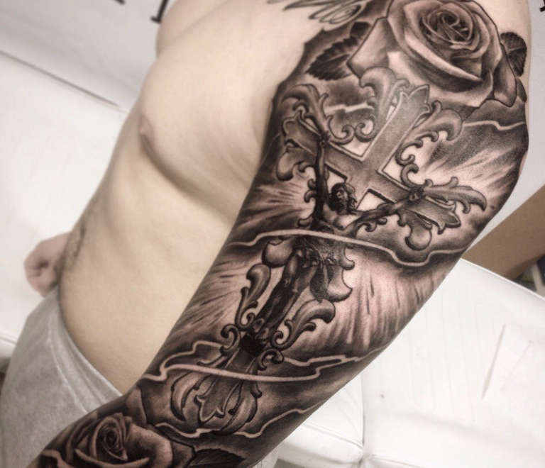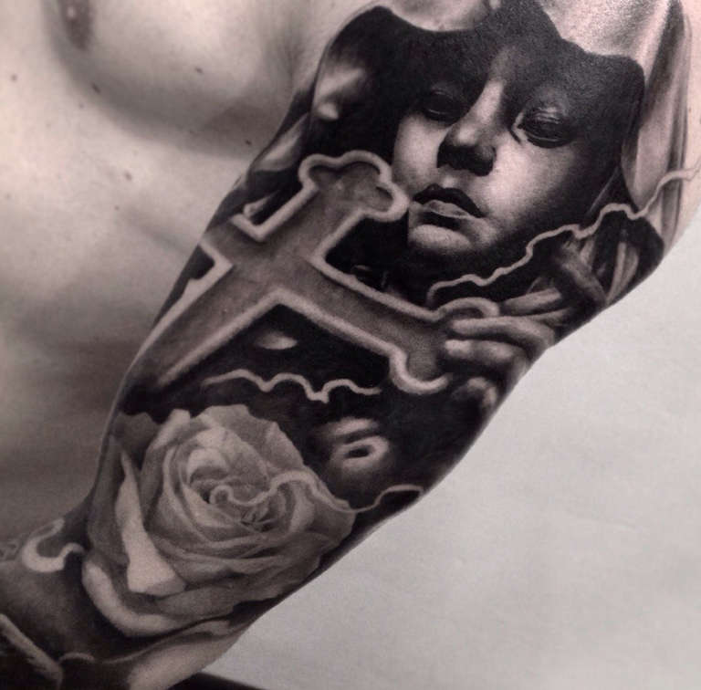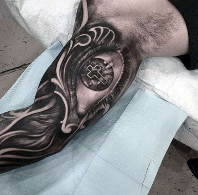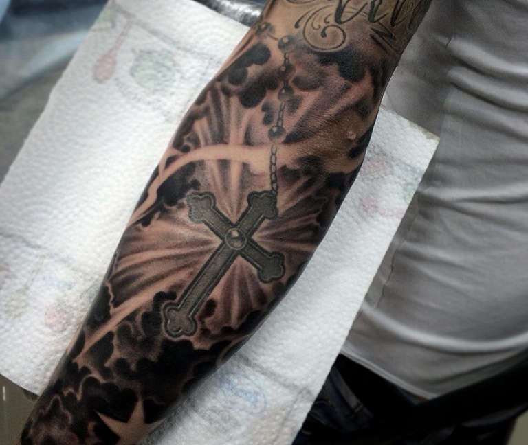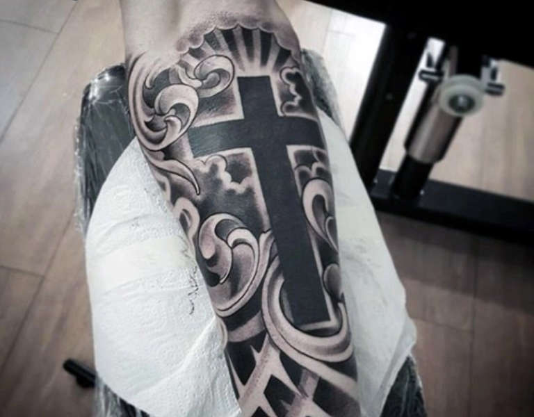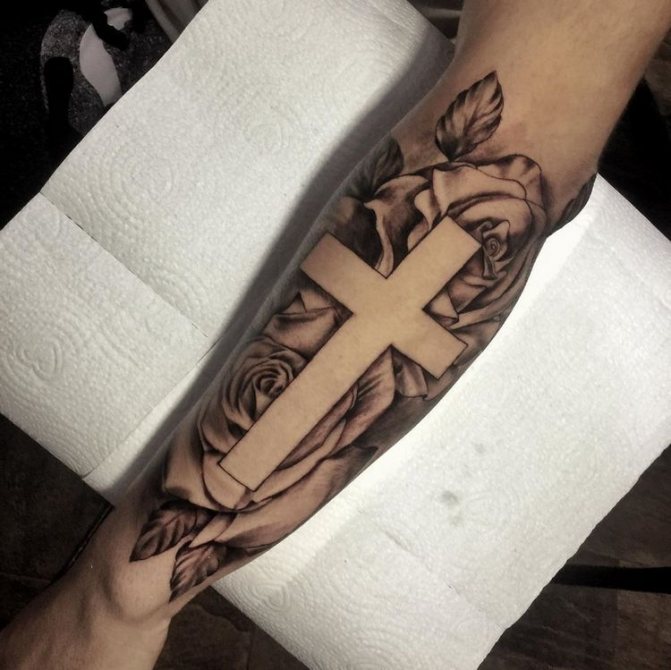 Una scelta frequente degli uomini moderni è il tatuaggio di una croce sull'avambraccio. Questo rappresenterà l'atteggiamento speciale di un uomo verso la sua immagine, l'onore, così come l'attrazione per il Signore e la fede, la forza d'animo e il nucleo interiore.