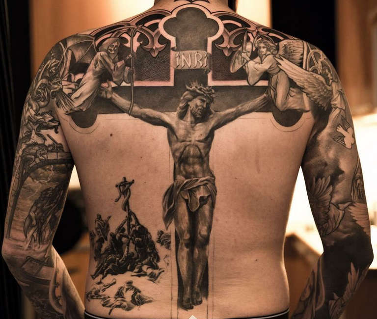 Se un uomo porta un tatuaggio di una croce sulla schiena, indica una concentrazione su obiettivi, missione e significato nella vita. Inoltre, l'uomo sottolinea il fatto che la mente ha la precedenza su qualsiasi altro organo e senso.