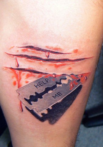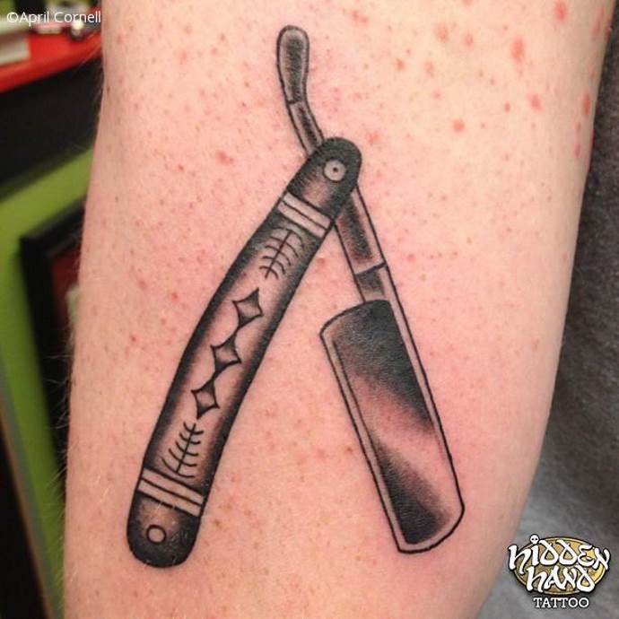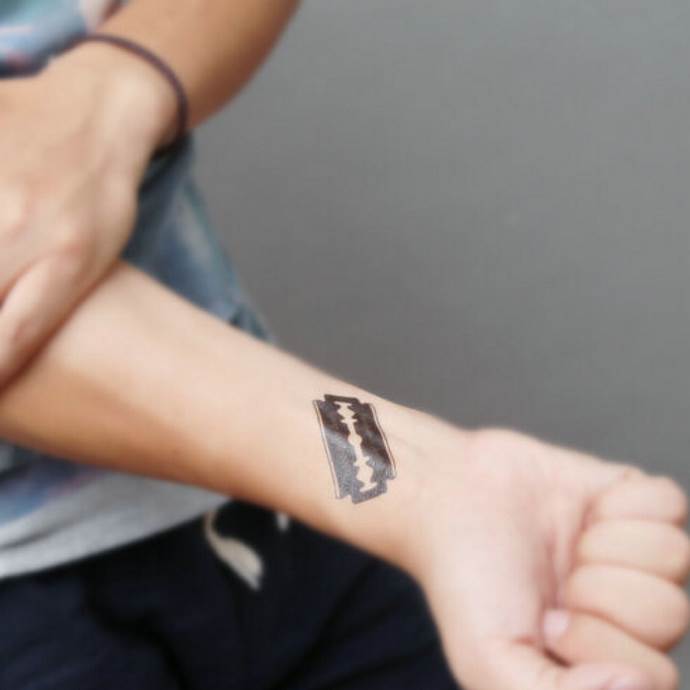 In varie sottoculture suicide, i seguaci si tatuavano una lama come simbolo di un tentativo di suicidio. Il numero di tatuaggi rappresentava il numero di tentativi. L'immagine affilata come un rasoio è comune tra i rocker e i motociclisti. I membri audaci e tosti di questi movimenti si tatuano una lama di rasoio per esprimere il loro carattere. Queste persone non si fanno scoraggiare da nulla nella vita, sono pronte agli atti più disperati e camminano sul filo del rasoio. Il tatuaggio affilato come un rasoio si trova nell'industria della bellezza. Il tatuaggio elegante è indossato come un simbolo di professione e un talismano per assicurarsi una carriera di successo.