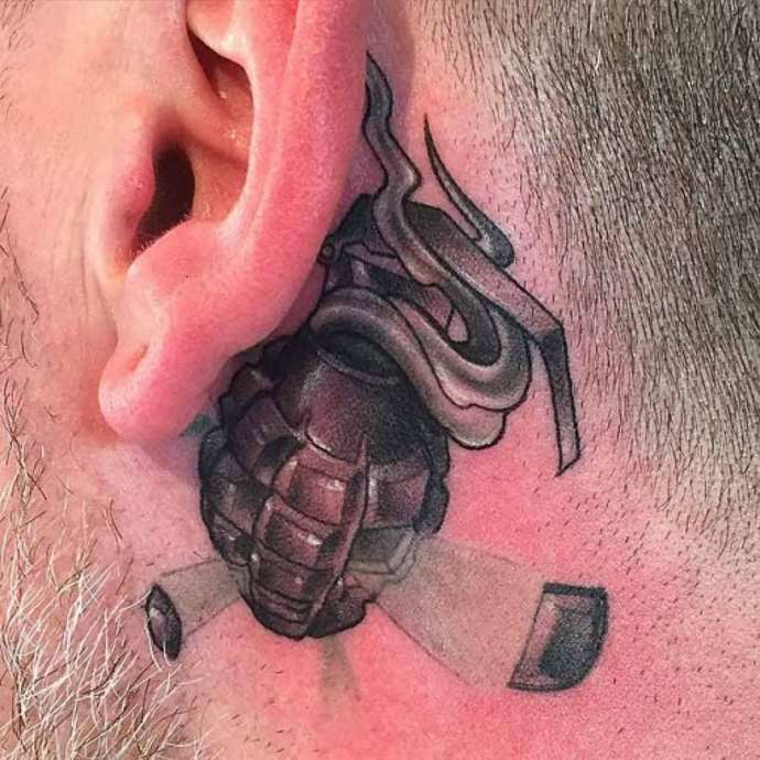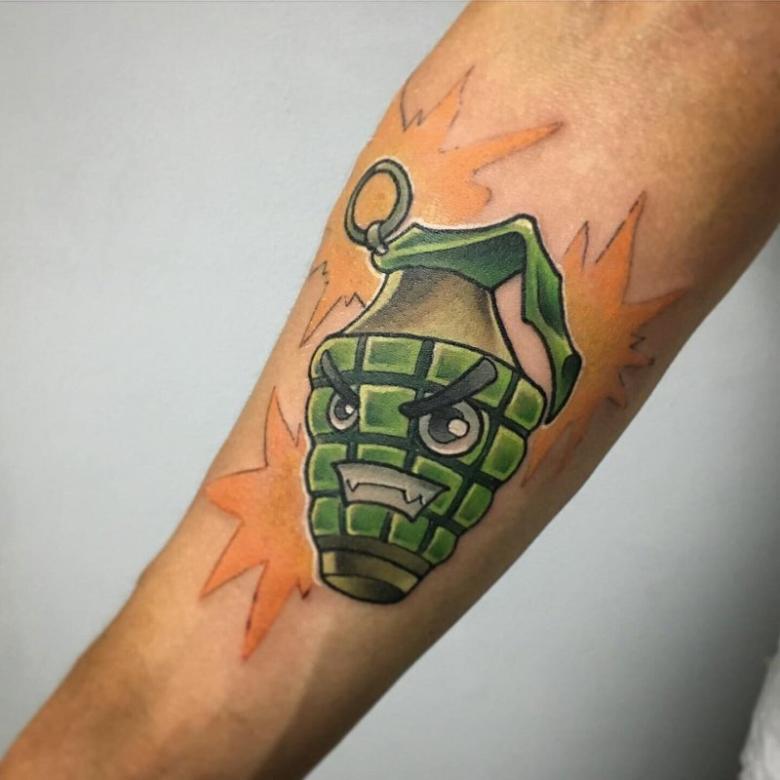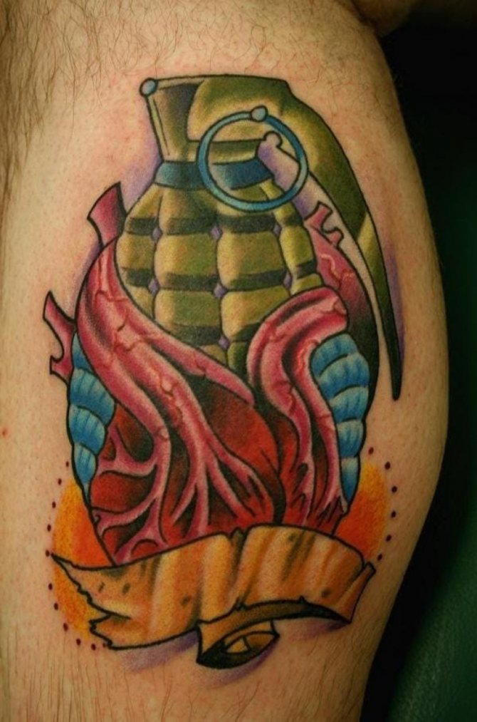 Il tatuaggio della granata è una rappresentazione simbolica dell'impatto che può essere inflitto a un avversario e della sua tecnica. Anche se le munizioni stesse sono in uso dall'inizio del XV secolo, i tatuaggi che le raffigurano sono diventati popolari relativamente di recente.