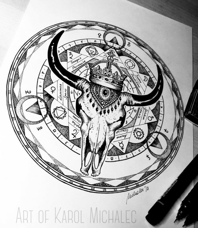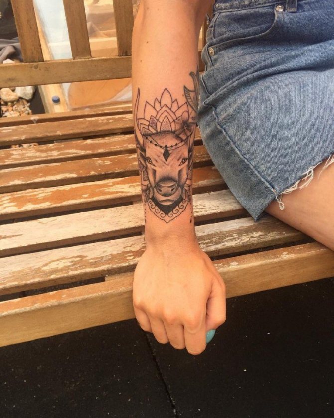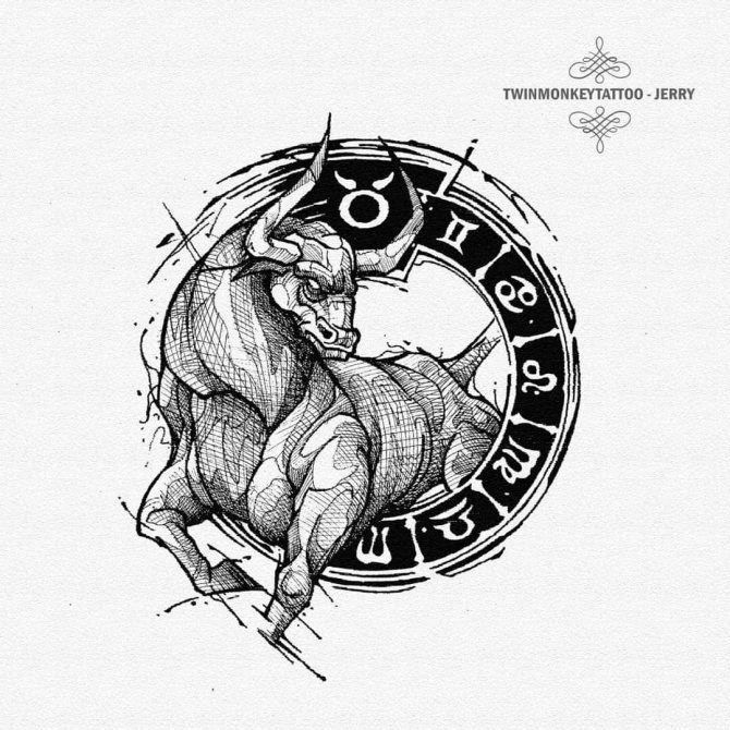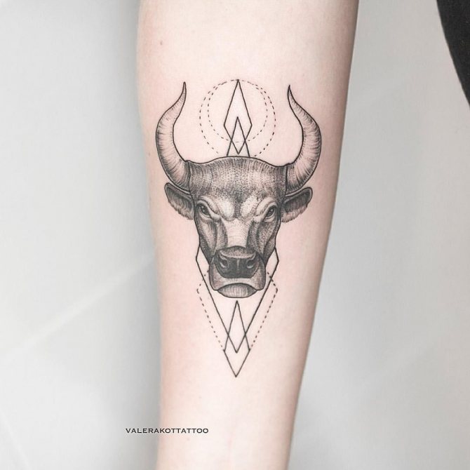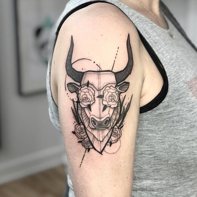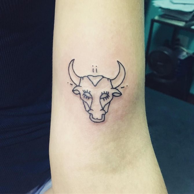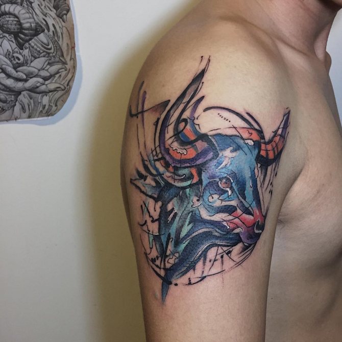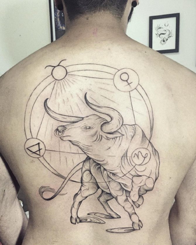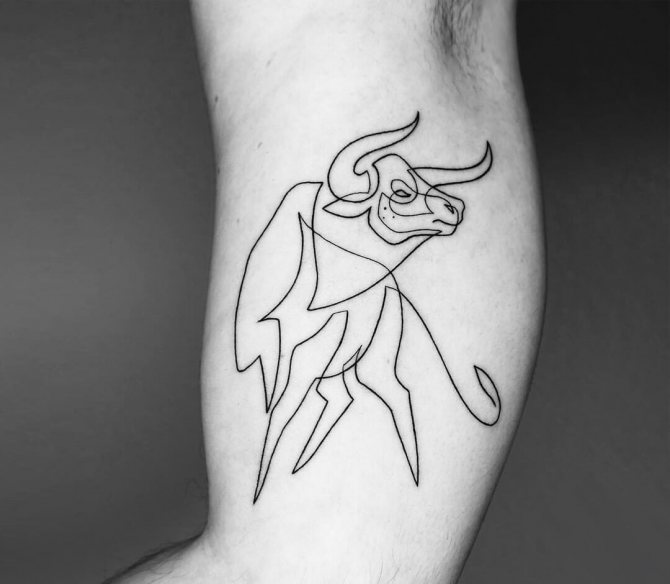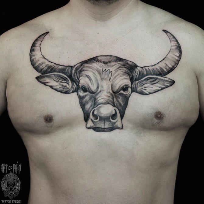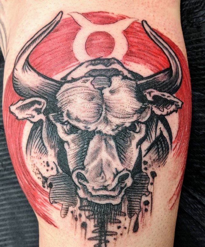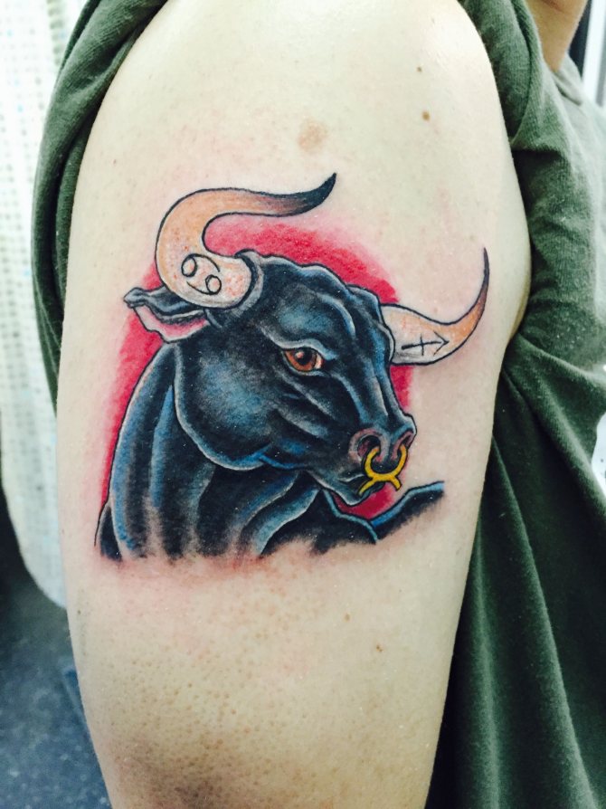Il Toro è il secondo segno del cerchio zodiacale, presentatoci sotto forma di toro, che rappresenta la risolutezza, la determinazione e il desiderio di vincere, che può essere attribuito alle interpretazioni comuni della body art. I nati sotto questa costellazione sono noti per la loro tenacia, notevole intelligenza, responsabilità e lungimiranza. Raramente prendono decisioni affrettate, a meno che, ovviamente, non siano interessati alle conseguenze. Il Toro è caratterizzato da passione, emotività e sensualità, quindi l'armonia e la tranquillità presenti nella sua vita possono facilmente trasformarsi in una tempesta sfrenata di emozioni negative dirette contro di te e persino crudeltà, quindi non mettere alla prova la sua pazienza. Il possente animale è anche considerato il patrono dell'intimità e dei beni materiali. Oltre a queste opzioni, ci sono altri significati del tatuaggio che dipendono direttamente dalla scelta del disegno.