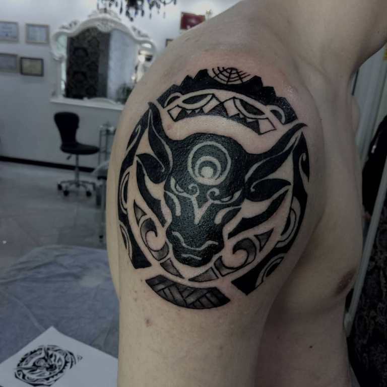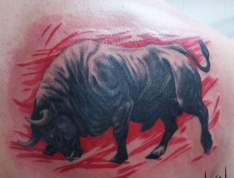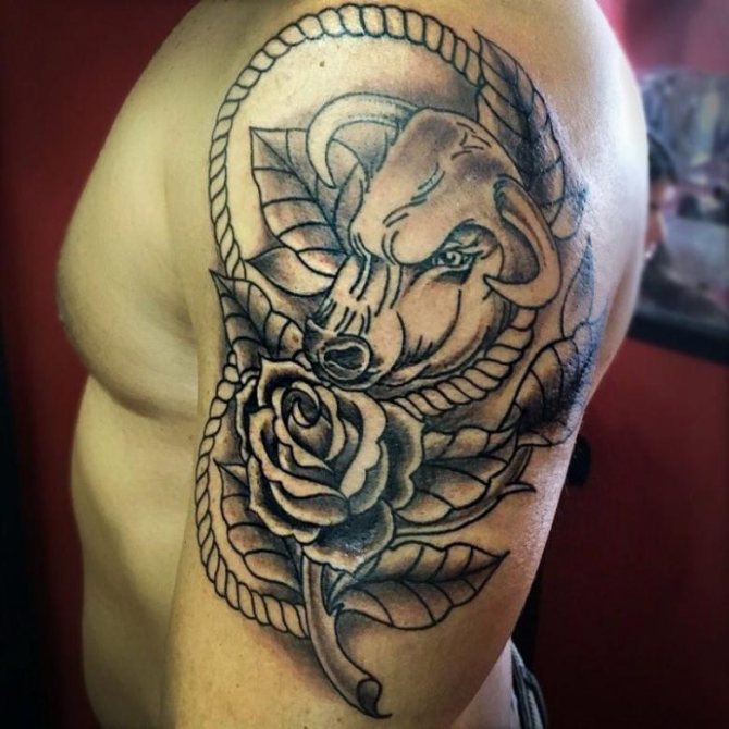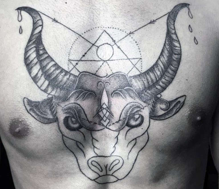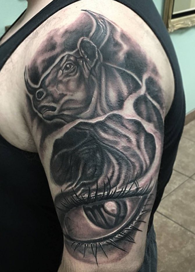 Il tatuaggio del Toro è di solito eseguito sotto forma di un disegno grande e dettagliato. Il suo posizionamento è associato al passaggio delle linee del cuore. Il tatuaggio del Toro sta bene sulla spalla sinistra perché questa zona è responsabile del cuore.