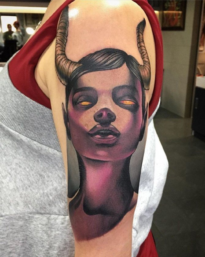Le varianti del tatuaggio della testa di toro sono abbastanza varie. Profilo, faccia intera, immagine sagomata o dettagliata, testa composta da piccole figure geometriche o linee astratte, schizzo colorato o monocromatico si adatta perfettamente all'idea di design. Lo schizzo può essere migliorato con dettagli come gli occhi ardenti dell'animale, getti d'aria dalle narici o un anello al naso. Sia gli amanti del minimalismo che quelli che preferiscono composizioni complesse saranno in grado di trovare un disegno adatto. I luoghi più adatti per un disegno grande e colorato sono la schiena o l'avambraccio. Quadri semplici e piccoli sono adatti per il collo, la spalla e altre parti del corpo dove il disegno scelto sarà armonioso.