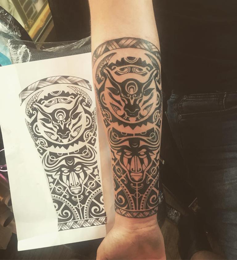 Gli uomini possono preferire un disegno di un toro circondato da fiamme o combinato con armamentario come spade, lame, asce da battaglia e asce.