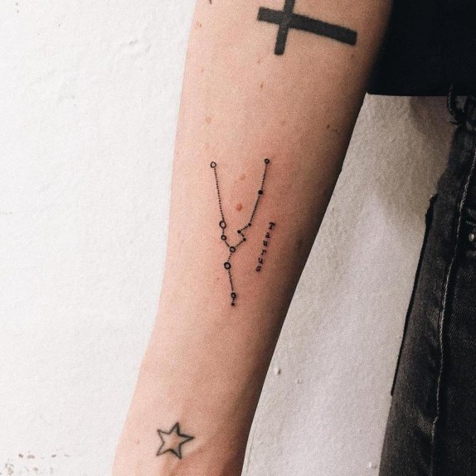 I segni zodiacali sono tra i tatuaggi universali, ma ci sono alcune differenze quando si sceglie un disegno. Le immagini ordinate che non hanno un'esibizione intenzionale di potenza e ferocia sono rilevanti per le ragazze. I ragazzi preferiscono disegni più luminosi e pronunciati. Iscrizioni, costellazioni e segni saranno una grande soluzione per il gentil sesso. La ferocia del toro e la testa del Toro sembrano più armoniose su un corpo maschile.