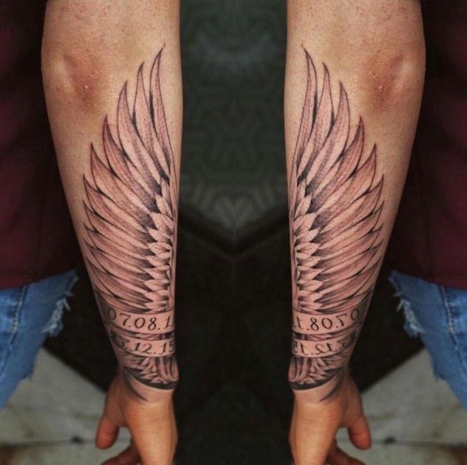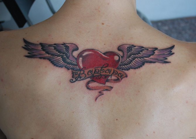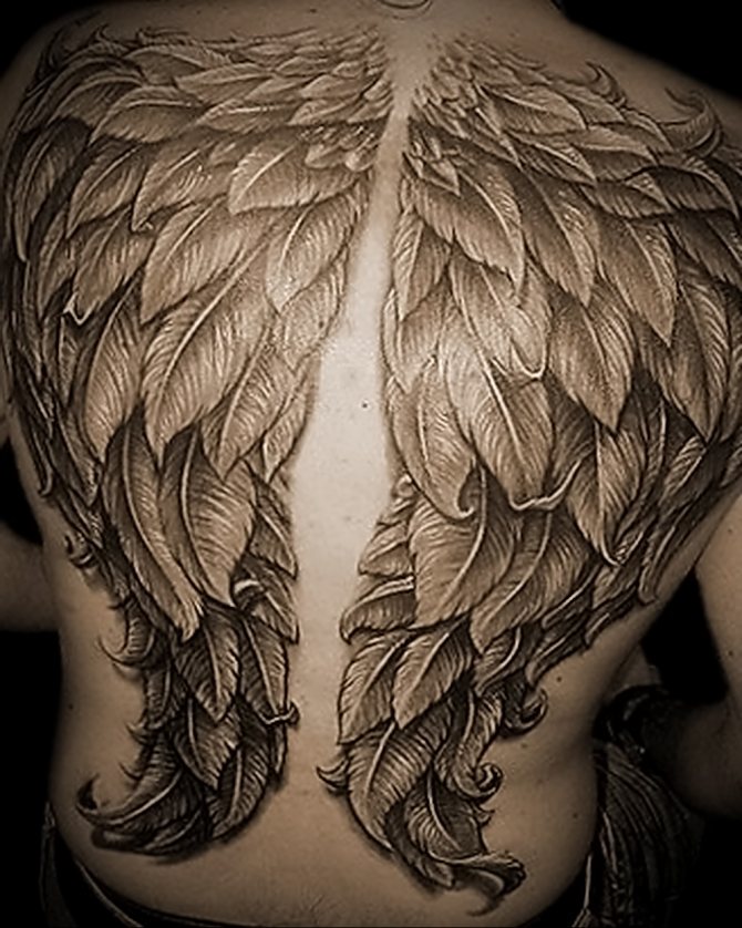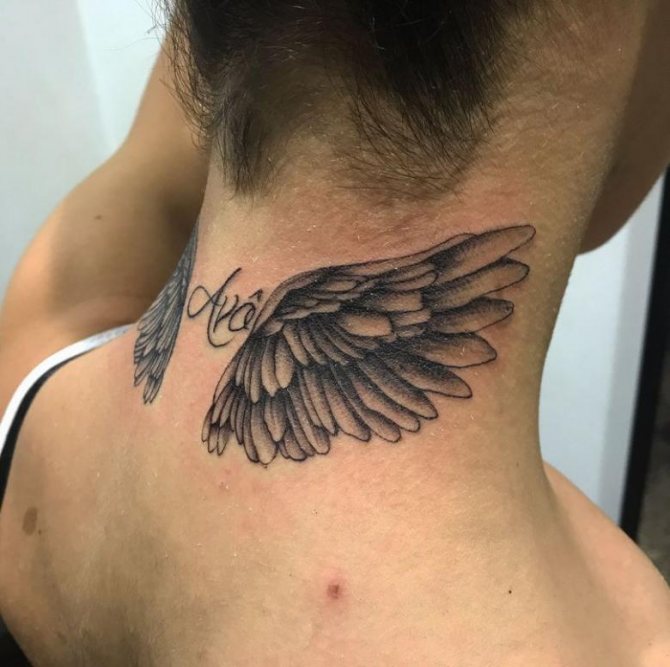 Ali. Il tatuaggio acquisisce diversi significati a seconda dell'area di applicazione. Per esempio, sulle gambe è chiamato "ali di Hermes". Nella zona della schiena e del seno il tatuaggio "ali d'angelo" è popolare sia tra gli uomini che tra le donne.