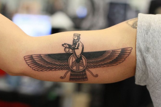 Il simbolo principale (alato) conosciuto come Farawahar si trova nello Zoroastrismo. Rappresenta il Fravashi, che è parte dell'anima umana e corrisponde all'angelo custode nelle religioni abramitiche. Egli rappresenta la benedizione divina data all'uomo da Ahura Mazda alla nascita.