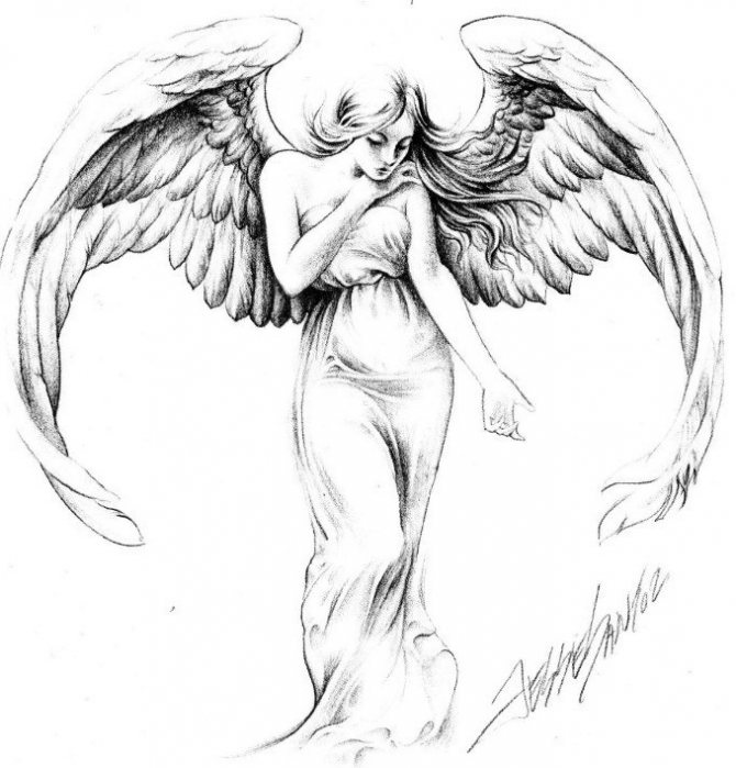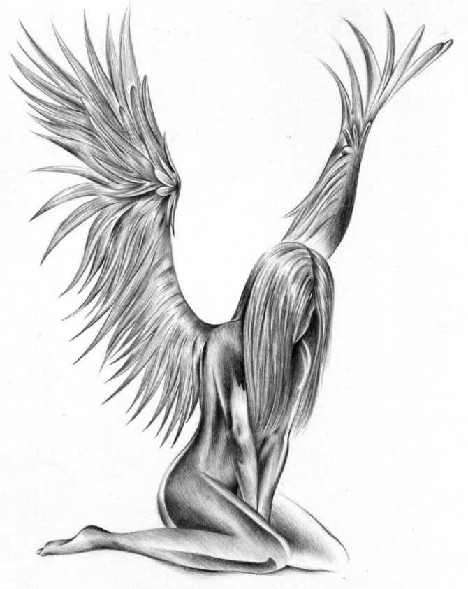 I disegni variano nella gamma di creature simboliche. Ali di un serafino o di un arcangelo, di un cherubino o di un angelo caduto? I serafini, per esempio, simboleggiano il più alto modello di aspirazione umana. Preferiscono solo una posizione di primo piano, lottando per la dignità e la gloria. Le ali dei serafini sono tre paia di ali.