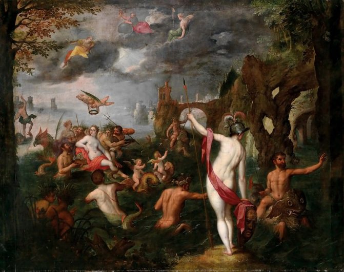 彼は三叉の矛を森の獣に勢いよく投げつけ、神の恐るべき武器はサテュロスの体を貫き、花崗岩の岩に突き刺さったのです。"こんな荒涼とした場所で一人で何をしてるんだ?" - ポセイドンはアニモンに尋ねた。アミモナは、「水を探していたんです」と言いながら、恐怖で口ごもる。父や姉妹が喉の渇きで死んでいる" - 岩に行き、私の三叉の矛を抜き取れ」とポセイドンは命じました。すると、花崗岩の中から清く冷たい水が湧き出ているのを発見した。ポセイドンは間違いなく最も偉大で最も強力な水の支配者であったが、彼だけではなかったのだ。南の海には、賢者プロテウスが住んでいた。彼はポセイドンのアザラシの群れの世話をし、ポセイドンの単なる臣下と見なされていた。