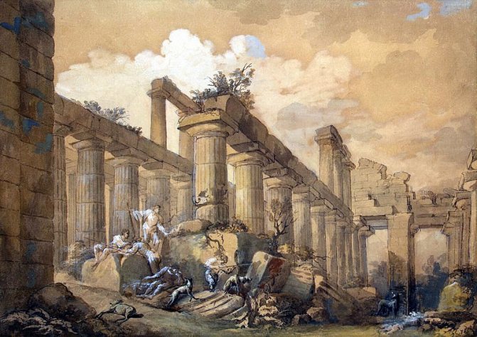 クレリソー、シャルル=ルイ。ペストゥムにあるいわゆるネプチューン神殿の遺跡。国立エルミタージュ美術館(ロシア、サンクトペテルブルク