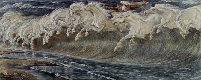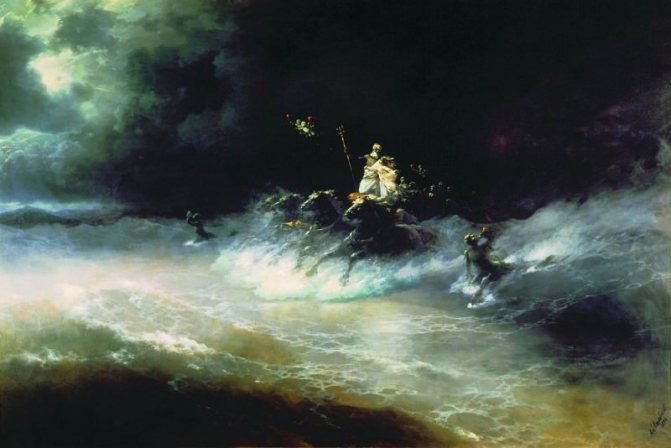 - 偉大な盲人であるホメロスは、神を海の色の髪を持つ主君と呼び、V.A.ジューコフスキーはその著作で神を紺碧の顔、青い王冠と呼んでいます。