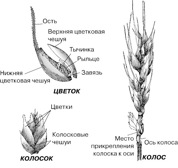 麦の穂の構造は、いくつもの節からなる関節軸の両側に穂状花序がある。広い穂状鱗片を持ち、その中に花が隠れている。後者には、外側(下側)と内側(上側)の2つの花鱗がある。下の方が小麦の頂点です。