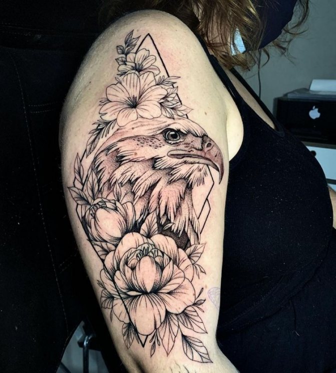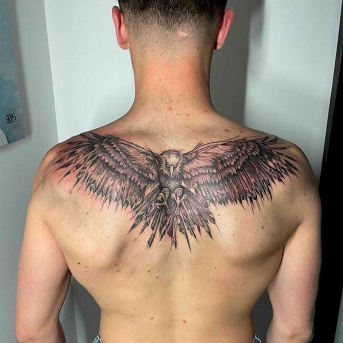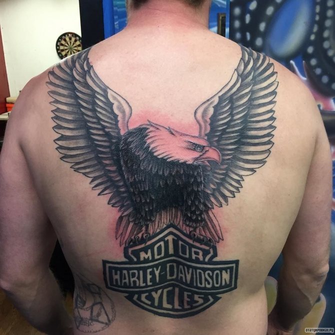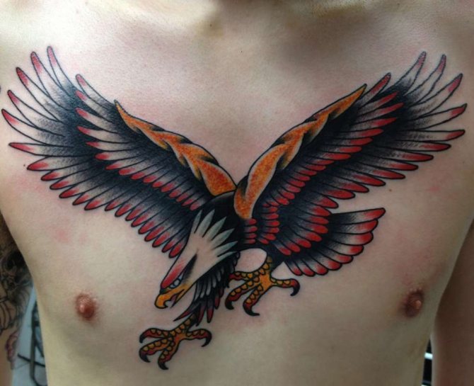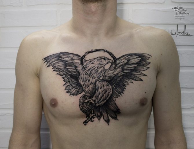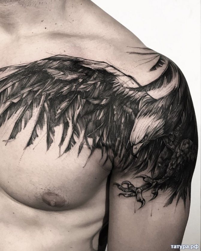 刺青の技術において、鷲のイメージは少なからず重要な意味を持っています。多くの国で、この鳥はさまざまな神話や伝説、物語に登場します。古来、鷲は、ほとんどすべての人間が持っていたいと思うような多くの資質を備えているとされてきました。大胆不敵で、迅速で、強い。これらは、多くの現代男性が望む特徴です。人類の強い半分の代表でとても人気のあるワシとこの理由のために入れ墨。