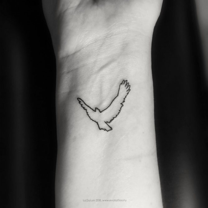 この鳥のイメージを体に描くのは、人類の中でも強い側の人間であることが多い。しかし、自由と独立を強調するために、この鳥をスケッチすることを好む女の子もいることは注目に値します。このタトゥーの意味は、身につける人の性格やデザインに込める思いによって変わるかもしれません。異なるボディに同じ画像を2つ並べると、その思想は大きく異なることがあります。
