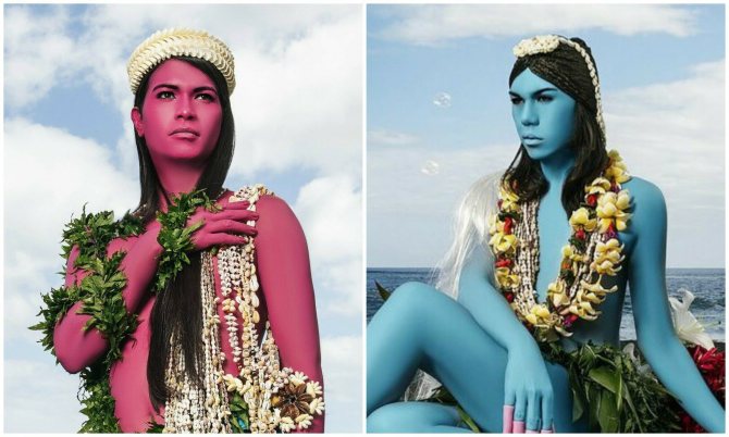 ポリネシアの島々の先住民の姿は、いくつかの民族の特徴的な違いが組み合わさっていることがよくわかる。顔立ちや肌の色は、黒人とモンゴロイドの両方の特徴を備えている。しかし、ポリネシア人はネグロイド系とは異なり、肌の色が明るく、鼻が目立ち、顔立ちがやや大きいなどの特徴がある。