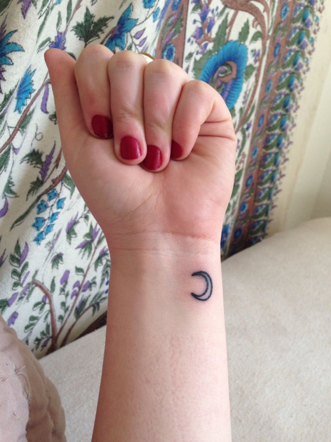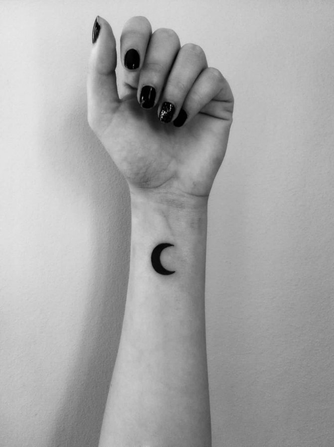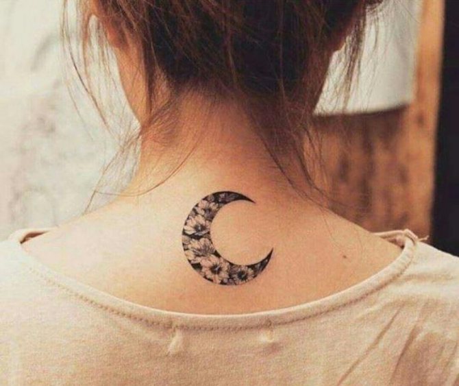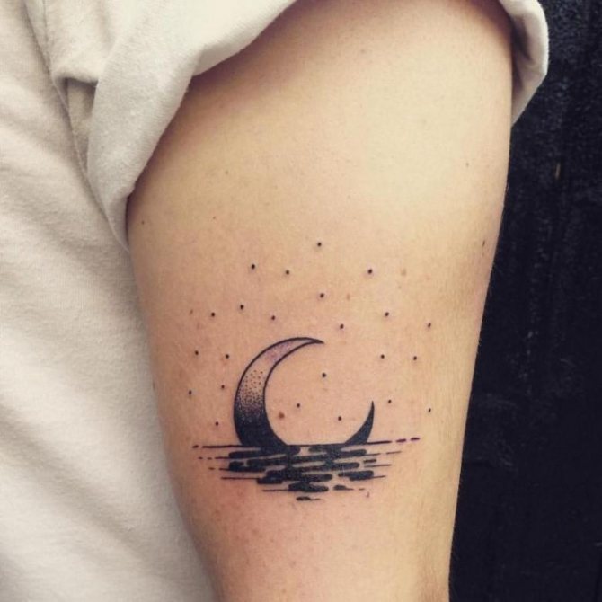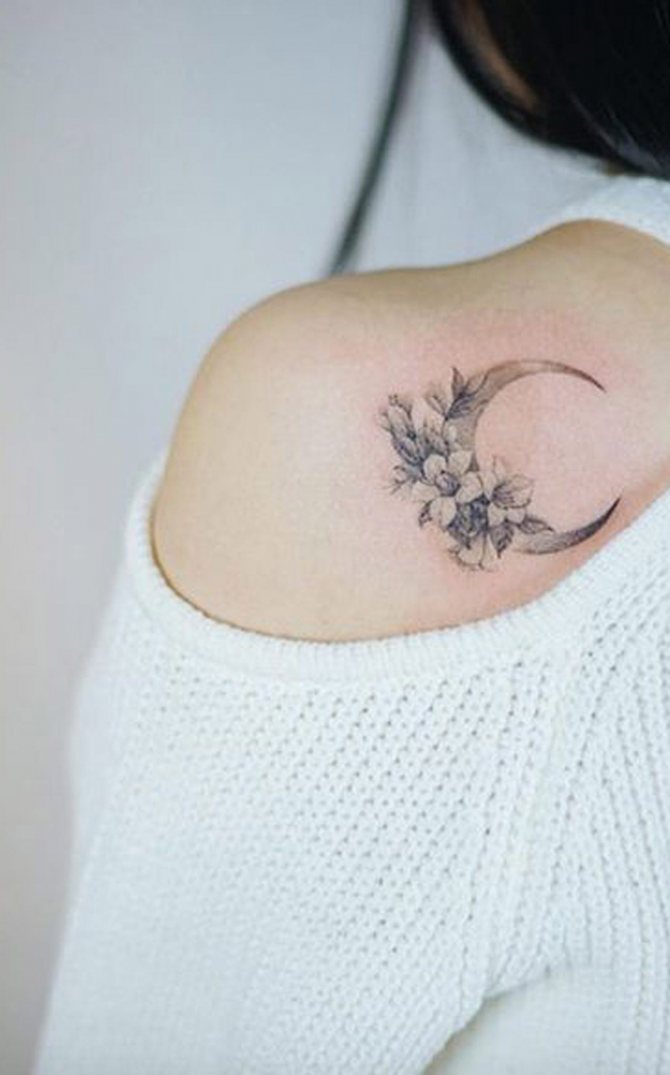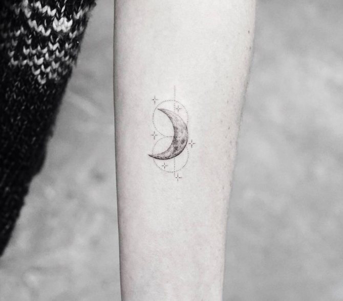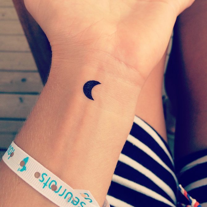 - 三日月のタトゥーの写真を見ると、このイメージはより公平な性別の体に調和して見えることにすぐに気づくことができます。月の女性的な性質がその役割を担っています。また、女の子の人生や周囲の人々、子どもに対する態度も重要な役割を担っています。しかし、女の子は男の子よりずっとロマンチックなので、三日月がふさわしいと思います。