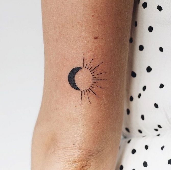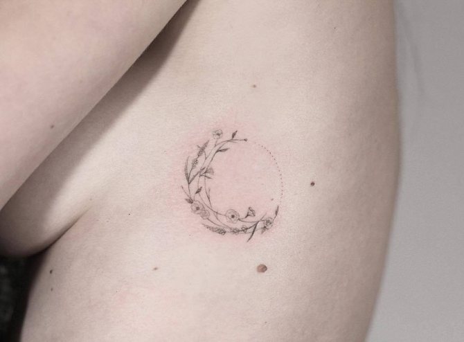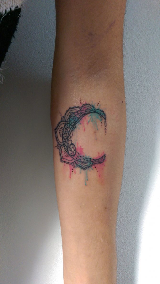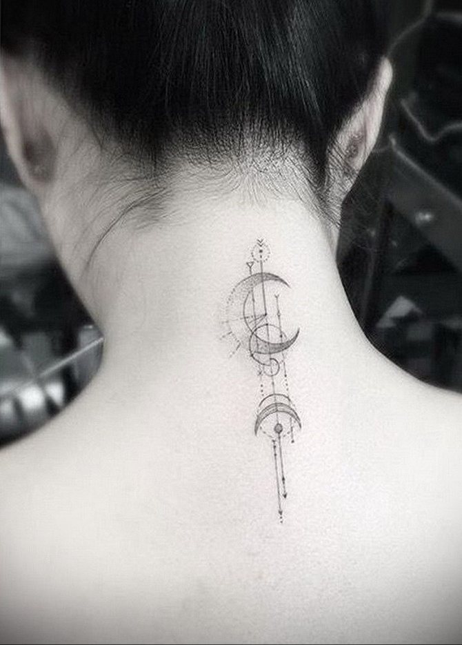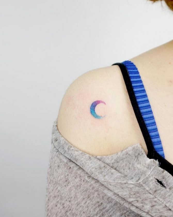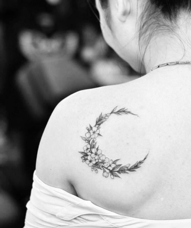 - 三日月のタトゥーの写真を見ると、このイメージはより公平な性別の体に調和して見えることにすぐに気づくことができます。月の女性的な性質がその役割を担っています。また、女の子の人生や周囲の人々、子どもに対する態度も重要な役割を担っています。しかし、女の子は男の子よりずっとロマンチックなので、三日月がふさわしいと思います。
