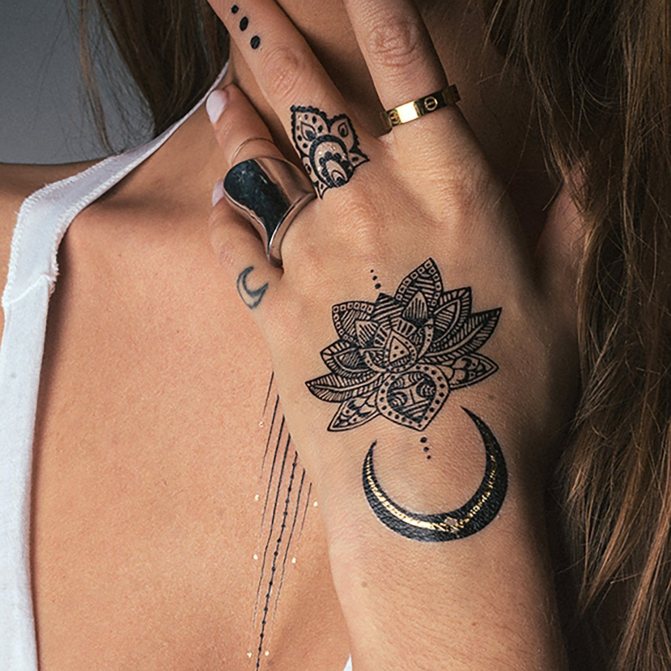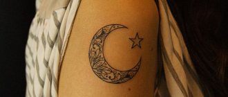 三日月のデザインを行う場合、そのタトゥーが身体に現れたときに何を意味するのかを明確にする必要があります。画像の認識は、それが置かれる場所や描画のスタイルに強く影響されます。神秘的なモチーフ、ロマンティシズム、メランコリーな傾向がはっきりと現れる場合もあれば、秘密主義、一貫性、強い意志、調和への欲求が見られる場合もあります。