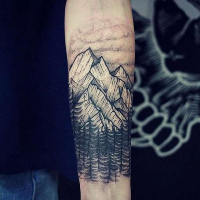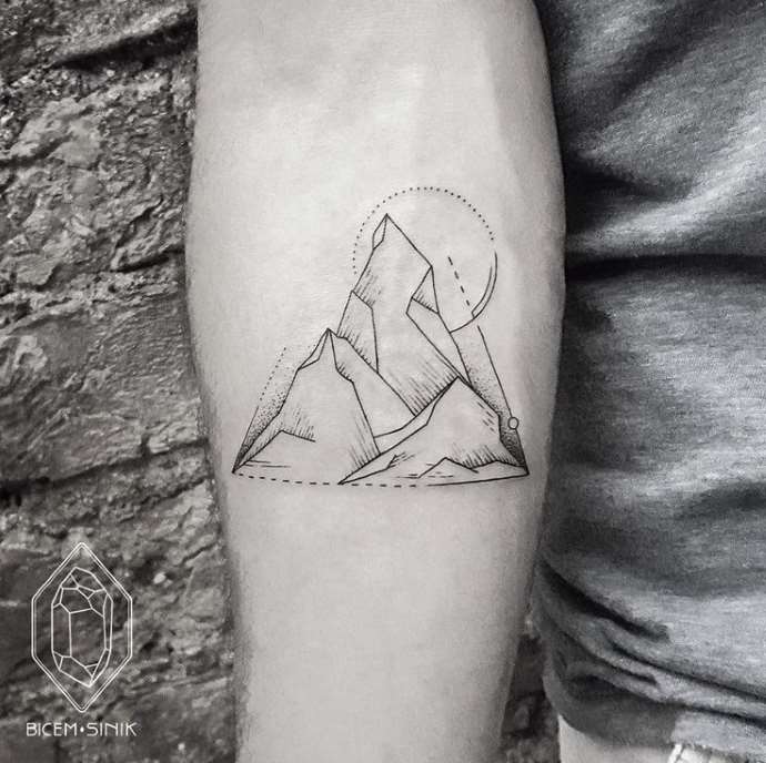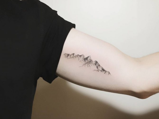 多くの人にとって、自然の風景は最も心を落ち着かせ、癒しを与えてくれる絵です。例えば、海とは違って、山は静かで穏やかな地形です。したがって、山の入れ墨のスケッチは、静けさと心の平和を象徴することができます。