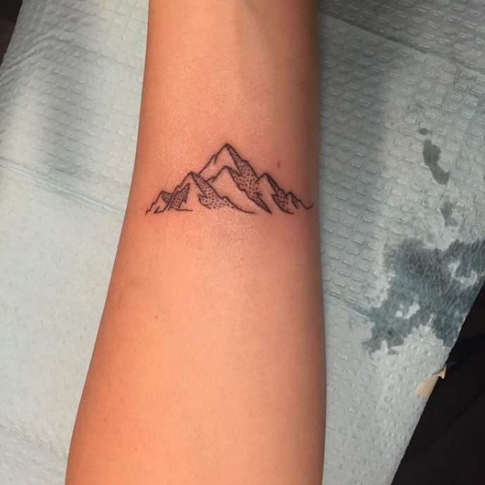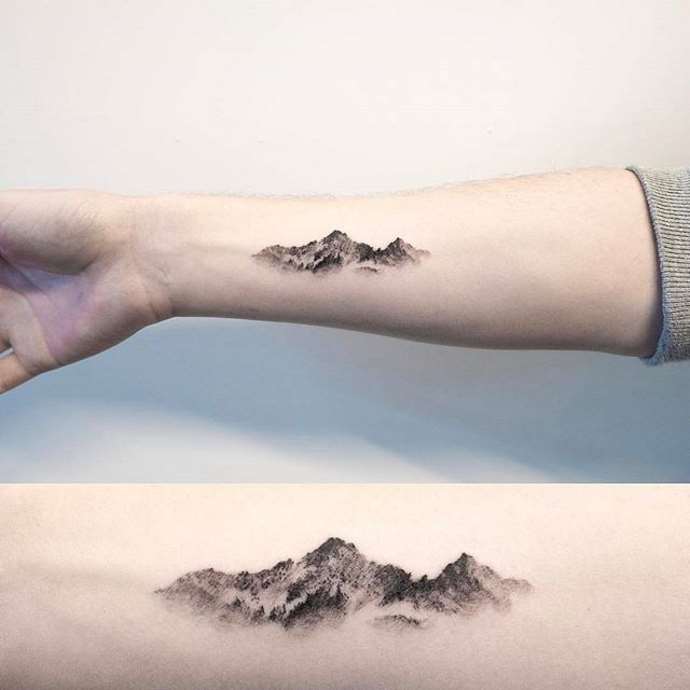 山そのものは決して小さくはないのですが、本体のスペースをとらないシンプルなスケッチを選ぶ人が多いようです。ミニ・タトゥーの大きな利点は、体のほとんどの場所に入れることができることです。指にはさんだり、耳の後ろにはさんだりすることも可能です。