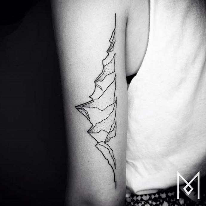 リアルなタトゥーは、アララト、カズベク、ベルカ、フジヤマなど、実際に訪れた山のスケッチをしたい人に最適です。