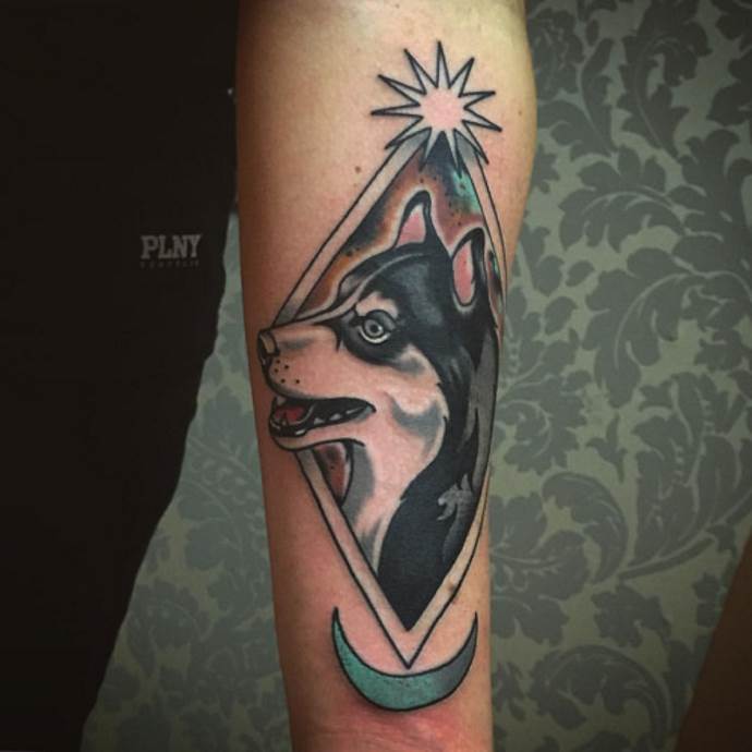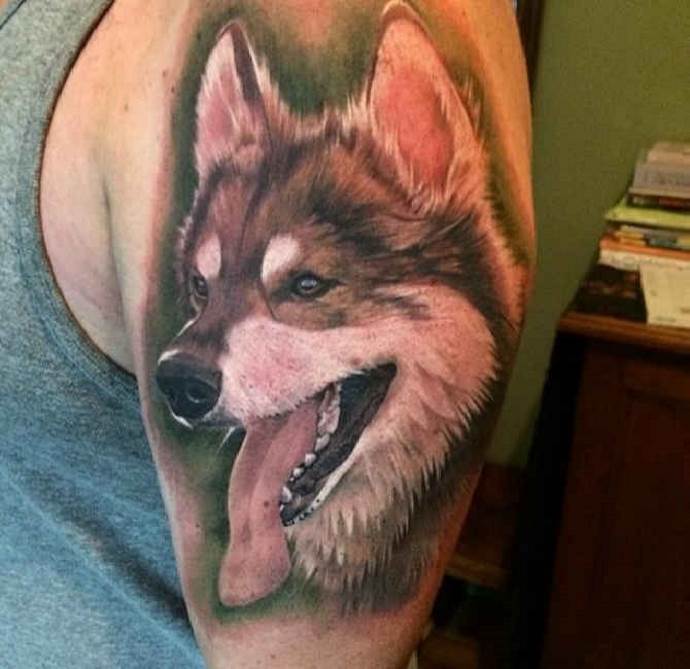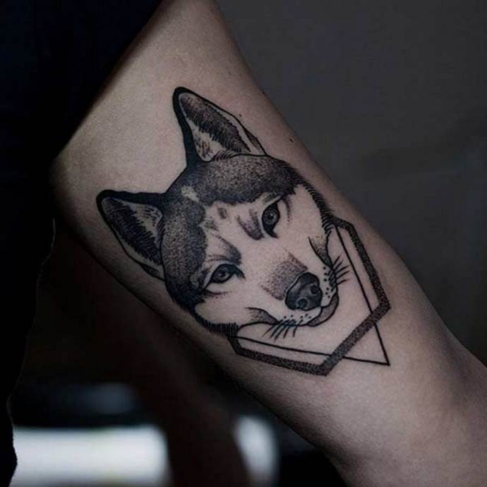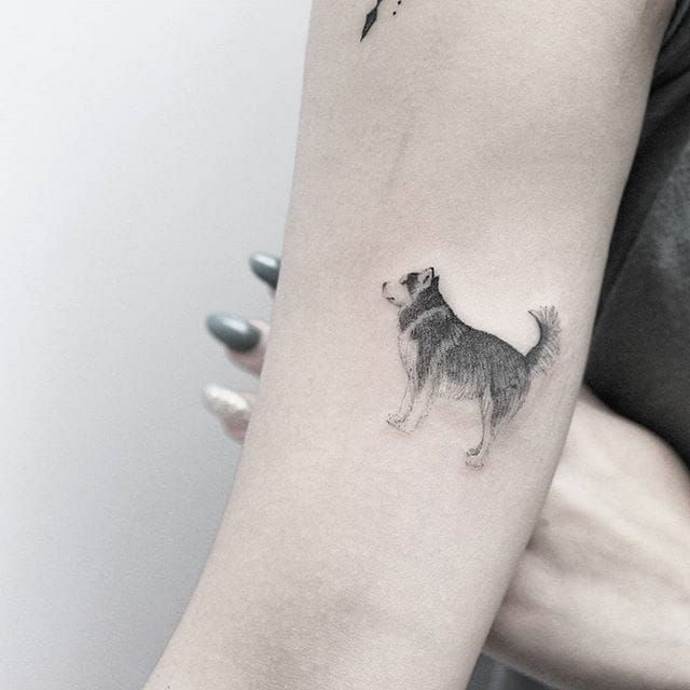 犬をモチーフにしたタトゥーは、そのペットのファンがよく遭遇するものです。漫画版でイメージを作る人もいれば、タトゥー・ピットブルなど特定の品種を好む人もいます。しかし、最近では、よく見かけるようになりました。 ハスキーのタトゥー.