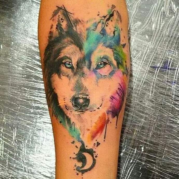 動物のイメージでは、リアリズムのスタイルがダントツのトップです。まるで写真のように自然に描かれていますね。ディテール、明確な輪郭とライン、豊かな色彩で構成されたこの作品は、美しいボディデコレーションと言えるでしょう。タトゥーには、碑文、サイン、その他の文字などのディテールを追加することで、ストーリーを加えることができます。腕に大きく描かれたハスキーのモチーフが目を引き、周囲の視線を集めます。