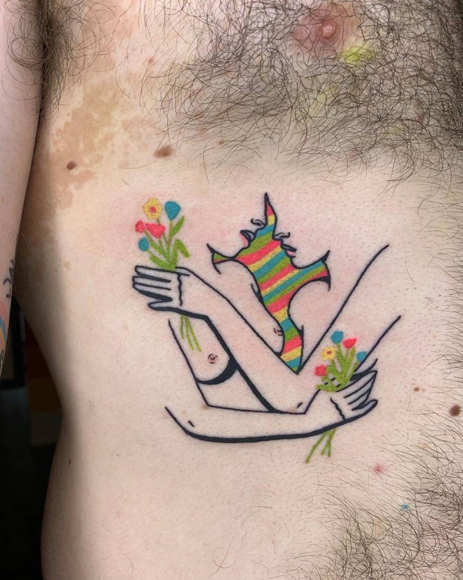 タトゥーの世界では、蝶は目的の容易さ、そして思い通りに生きる力を示します。昆虫は明るければ明るいほど、その創造力は活発になります。