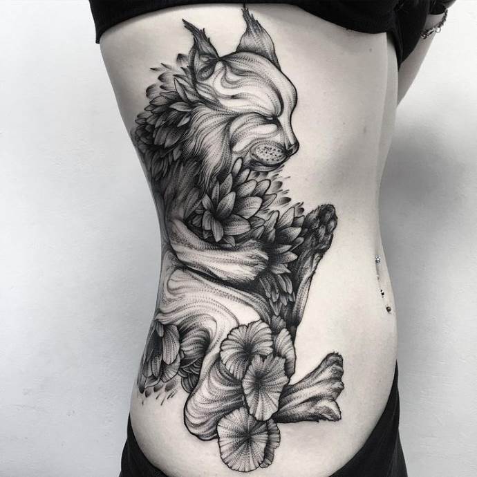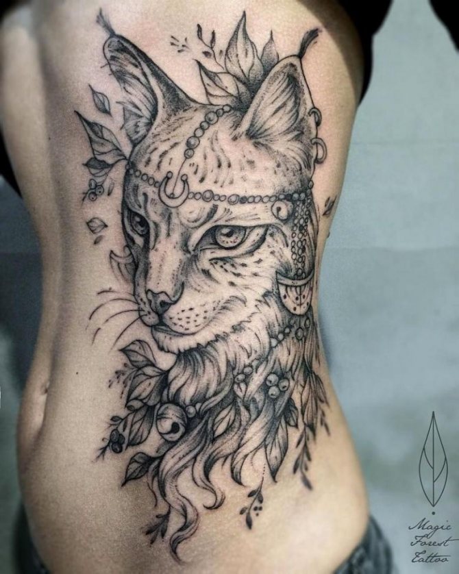 オオヤマネコは美しくも素直な動物ですが、だからこそ、飼い主にこうした資質を与えてくれるのでしょう。そんな刺青をした女性は、人に媚びない。しかし、彼女の外見はとても魅力的で、率直でクールなところに好感を持つ人も多い。