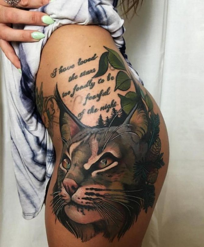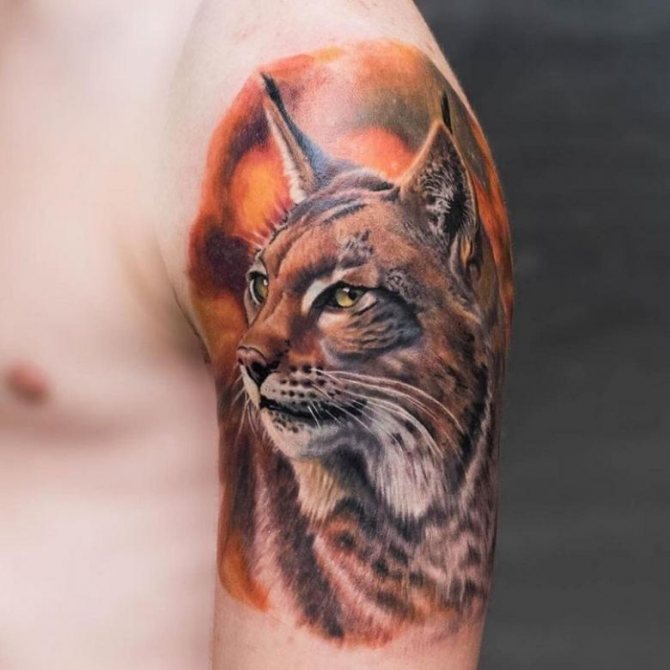 タトゥーのオオヤマネコは、例えばライオンのタトゥーのように、それほど人気があるわけではありませんが、観客はあまりにも持っています。特に、女の子にはタトゥーのオオヤマネコが似合うようです。実際、男性はこのネコ科の動物をタトゥーに選ぶことは少ない。しかし、オオヤマネコのイメージに隠された象徴は、性別によって変わることはないのである。