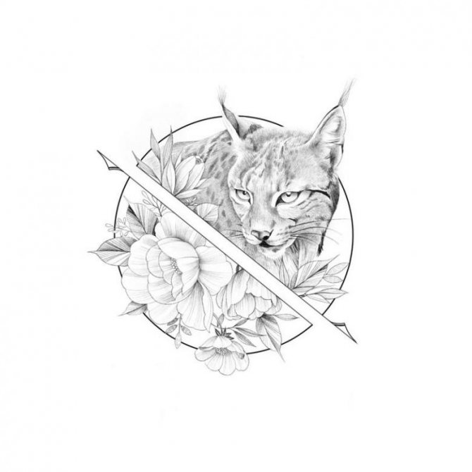 リンクスのタトゥーはそれほど一般的ではありません。しかし、人々はこの耳の先端に房があるネコ科の肉食獣を好む。美しい大型ネコ科動物である一方で、危険な野生動物でもある。肉食獣の鋭い視線と、シベリアの厳しい森で生き抜く力が印象的です。