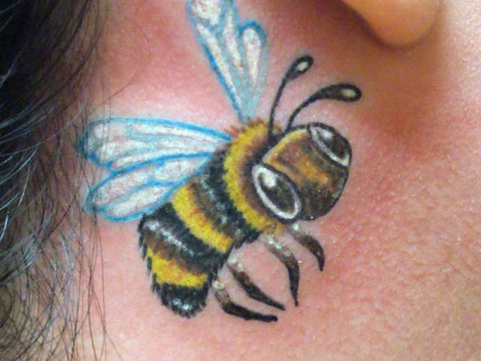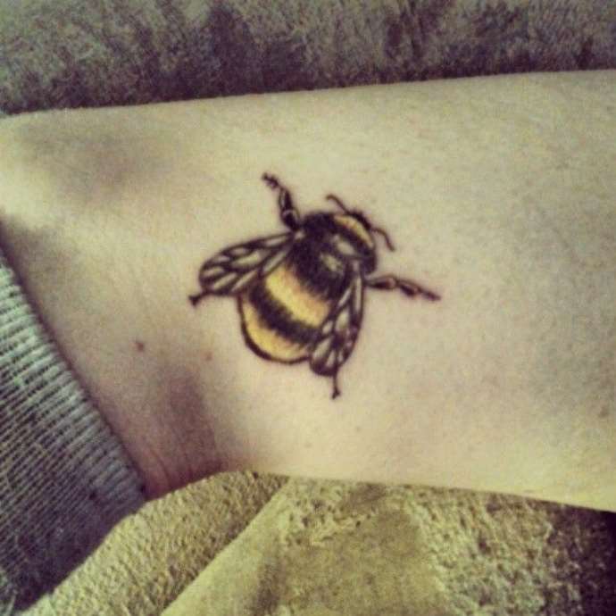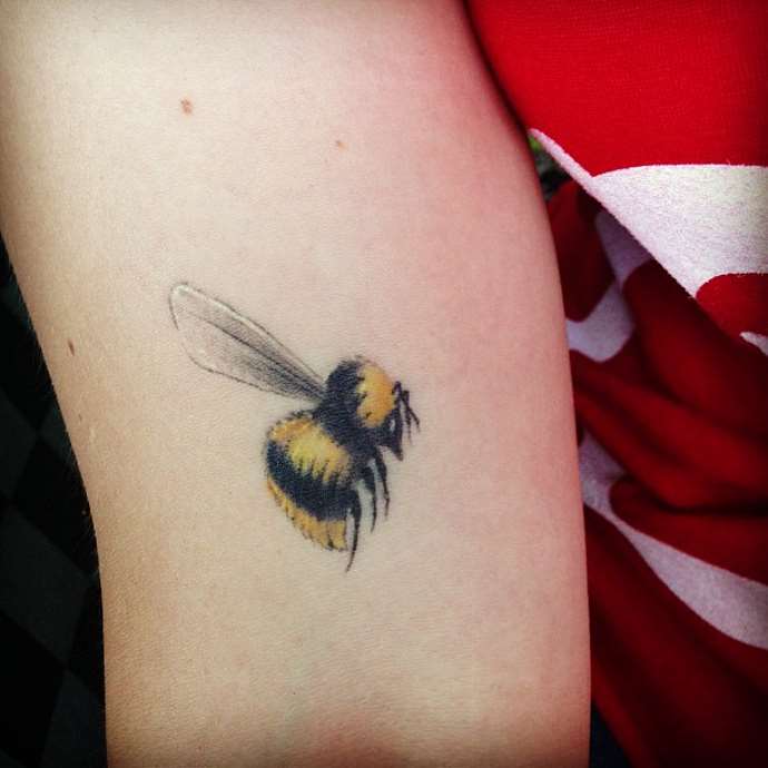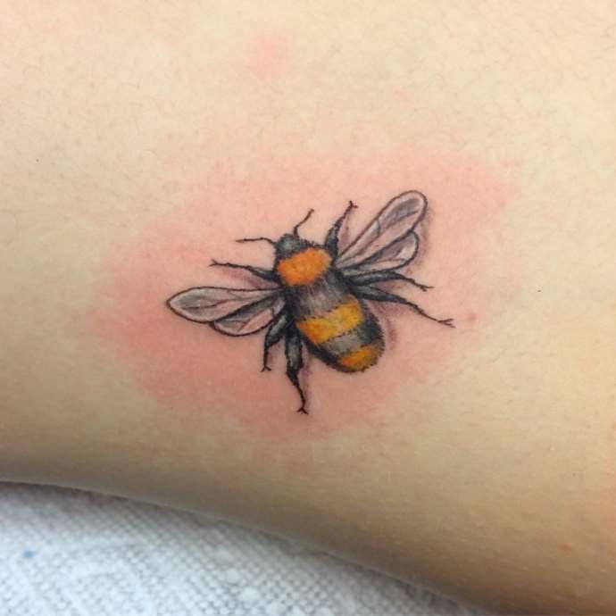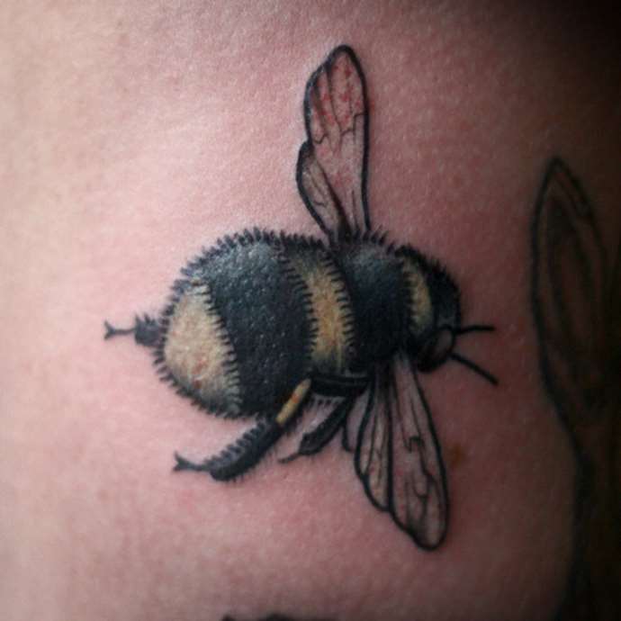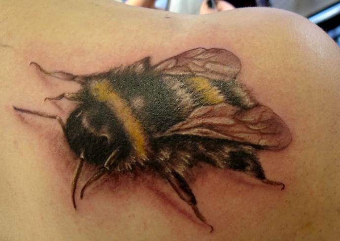 マルハナバチは不器用なので、男らしさを連想させますね。しかし、女性の体にも、タトゥーは調和して見えるでしょう。美しく、無害な昆虫です。