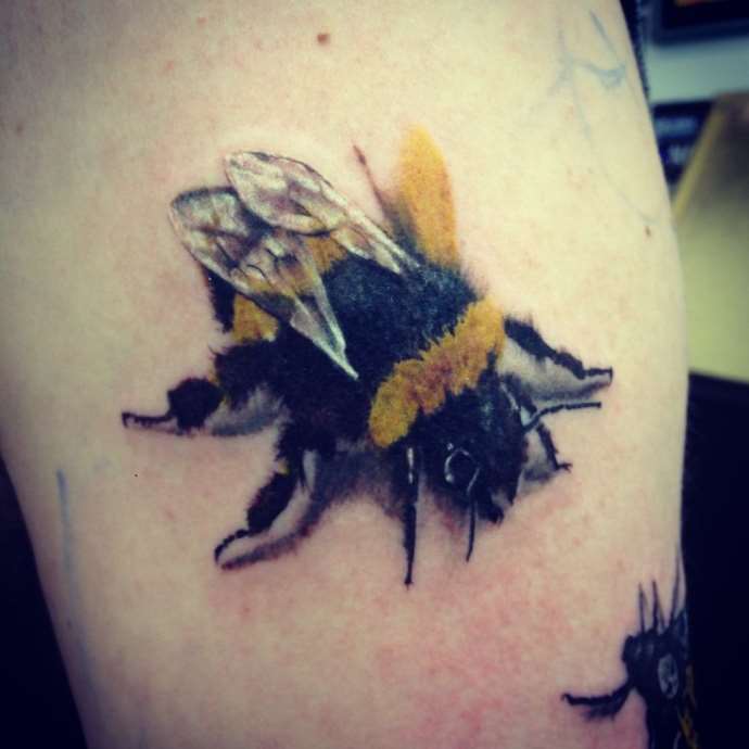 バンブルビーのタトゥーは、しばしばリアルなスタイルで行われます。このスタイルだからこそ、この昆虫の持つ美しさを伝えることができるのです。