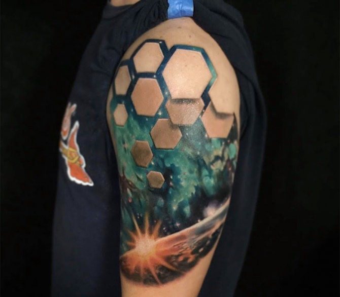 次の選択肢は、宇宙のタトゥーです。複雑で大規模なドローイング。多くの場合、現実の空間オブジェクトを参照することなく作成されます。