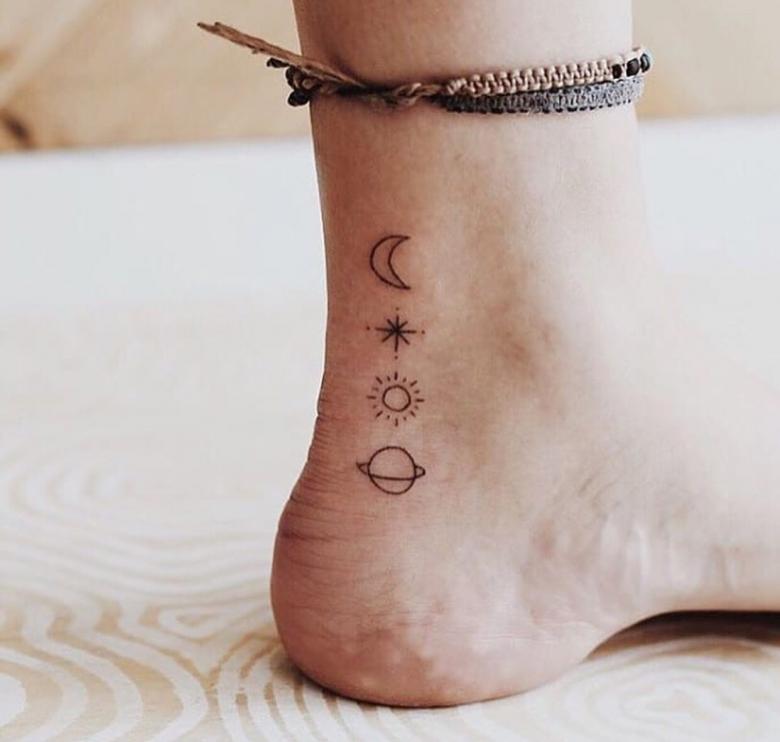 惑星のタトゥーは世界共通です。男女を問わず同じ意味を持つ。愛と美のシンボルである金星のタトゥーは、女の子の間で最もよく見られます。このようなボディイメージは、女性の穏やかな性格、知恵、内なる調和を反映しています。腕、肩、手首、足首に使われるデザインです。
