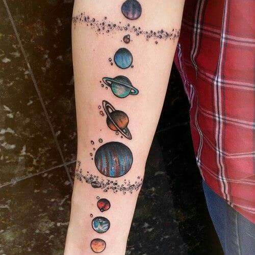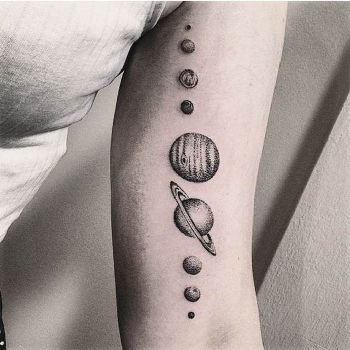 惑星をモチーフにしたタトゥーの持ち主は、型破りな性格で、世界を創造するという概念を構築しやすい。そういう人は、生きている意味、この世にいる意味を重んじます。プラネットタトゥーは、人間が宇宙のあらゆる要素に深く関わっているという哲学的な考えを具現化したものです。