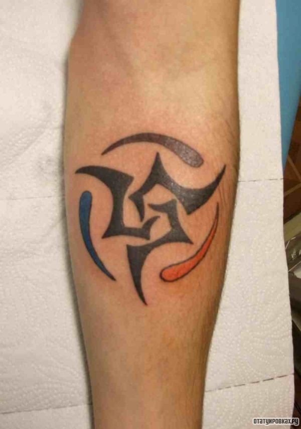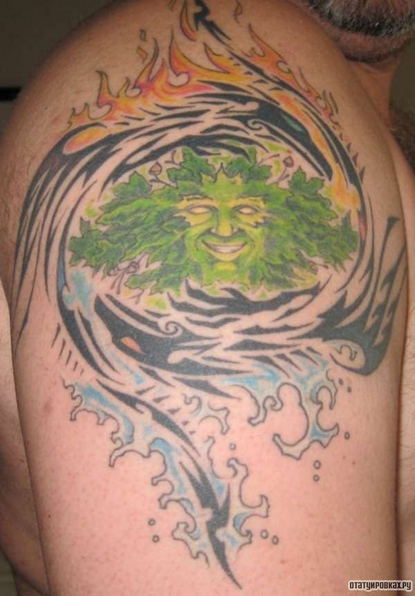 この解釈は、太陽との結びつきを強調するものです。このタトゥーには、水、大地、空気に捧げられたドローイングが加えられています。イメージの組み合わせは、普遍的な調和を意味します。