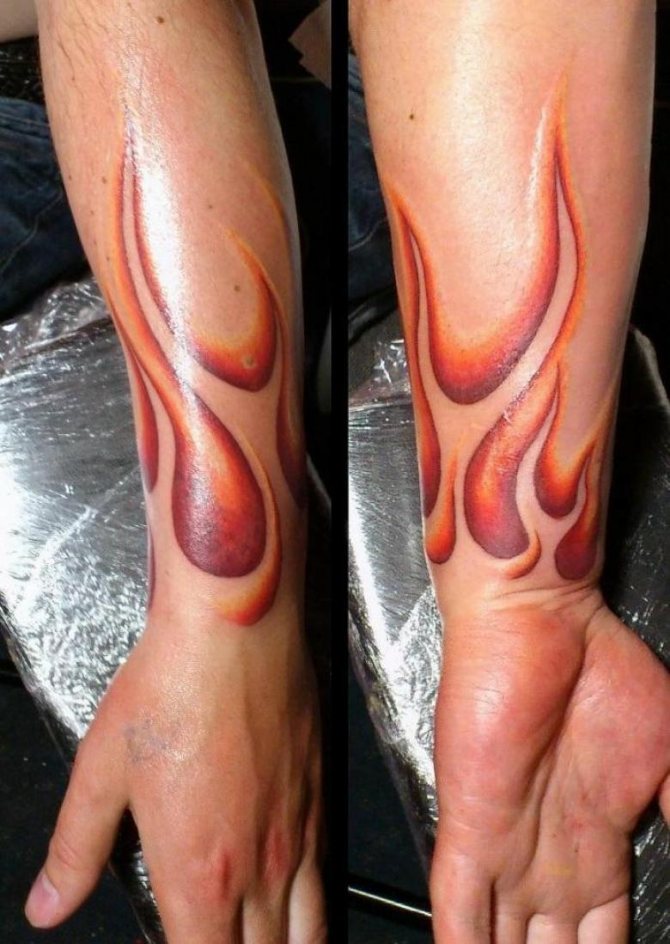 火の入れ墨は、そのようなデザインの所有者が恐れを知らず、どんな危険も恐れないというシンボルにもなりえます。しかし、コントロールが効かず、誰にも従わないし、攻撃的な面もある。
